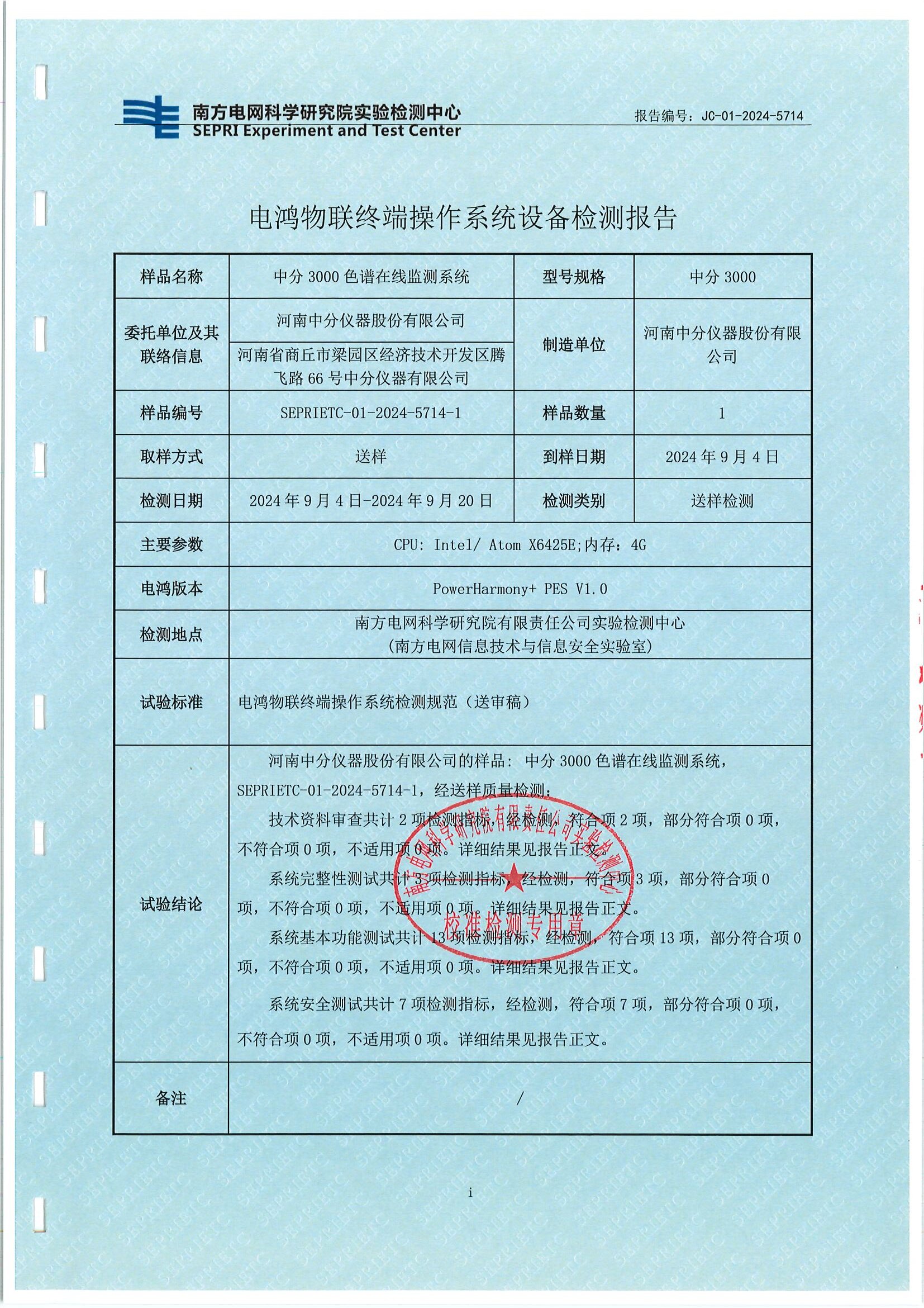近期中分3000色譜在線監(jiān)測(cè)系統(tǒng)新開(kāi)發(fā)應(yīng)用程序,開(kāi)啟了色譜在線監(jiān)測(cè)產(chǎn)品適配電鴻操作系統(tǒng)實(shí)現(xiàn)萬(wàn)物互聯(lián)新征程。24年9月份順利取得了南方電網(wǎng)科學(xué)研究院實(shí)驗(yàn)檢測(cè)中心的檢測(cè)報(bào)告,色譜在線監(jiān)測(cè)產(chǎn)品國(guó)產(chǎn)操作系統(tǒng)兼容性不斷提升,為行業(yè)的發(fā)展注入了新的活力。此次中分 3000 與電鴻操作系統(tǒng)的適配成功,為電力行業(yè)擺脫對(duì)國(guó)外操作系統(tǒng)的依賴,建立自主可控技術(shù)體系提供了有力的示范。